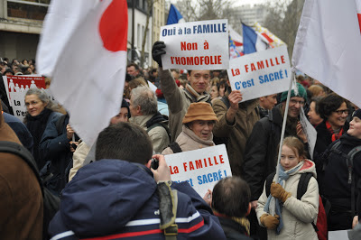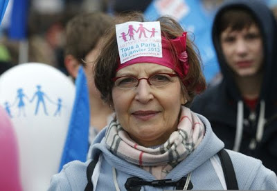 Em decalagem com um milhão de manifestantes que clamavam pela retirada imediata do projeto de lei Taubira[foto abaixo], os mais altos responsáveis pela Igreja na França se limitaram a pedir que no debate parlamentar sejam encontradas formulações respeitosas do caráter heterossexual do casamento, da filiação e das pessoas homossexuais.